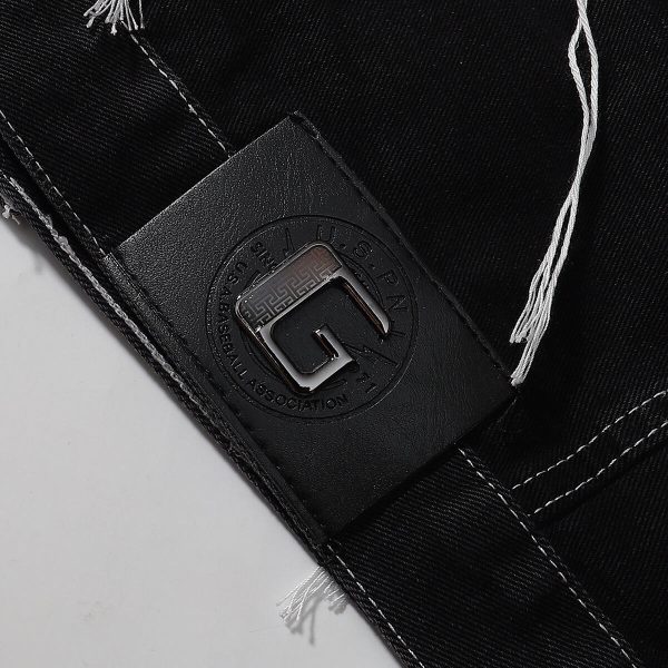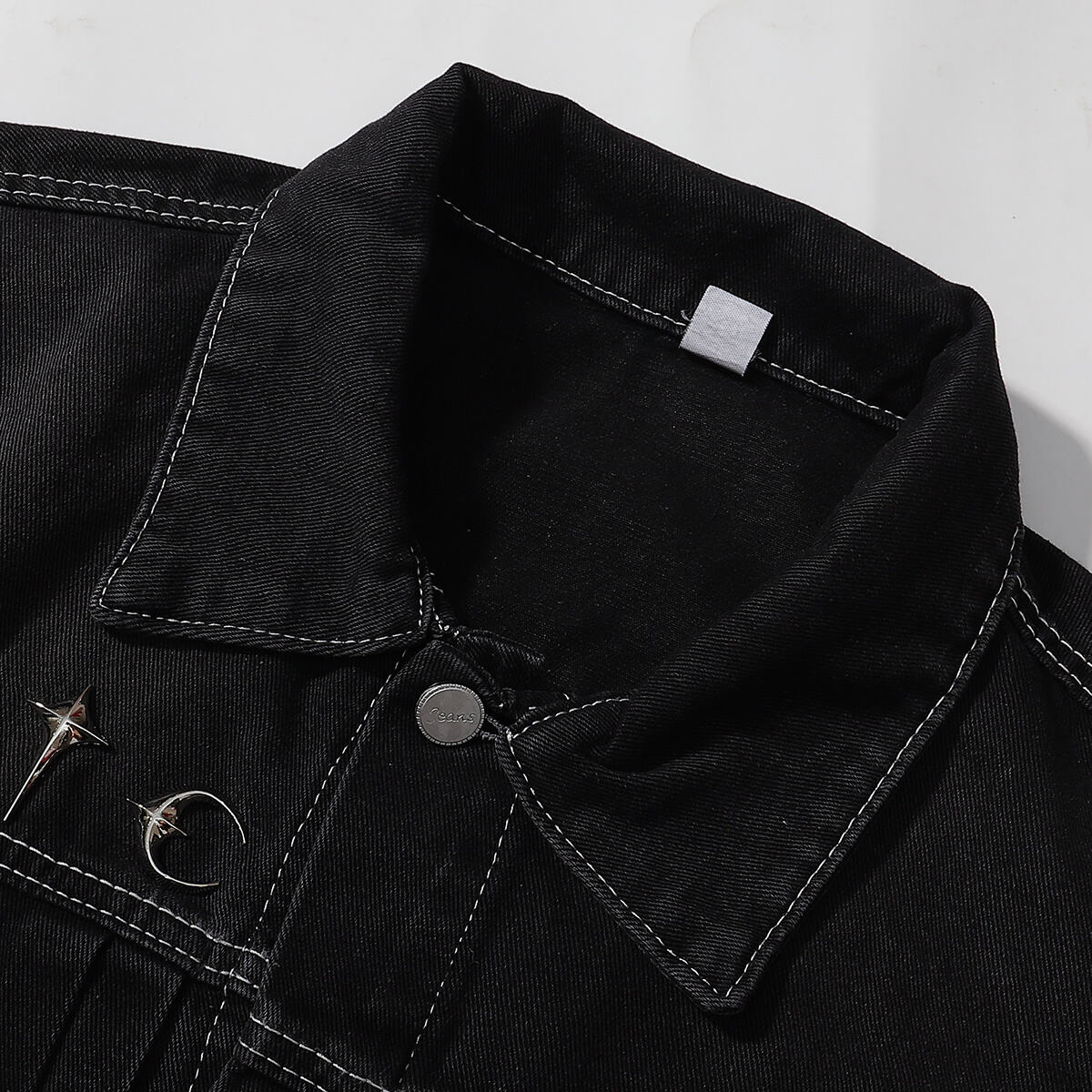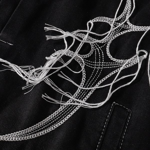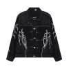 Black denim jacket with abstract white embroidery