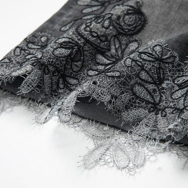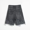 Asymmetric raw-edge denim shorts | handcrafted heavy embroidery