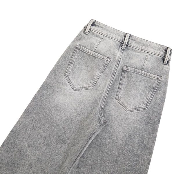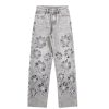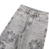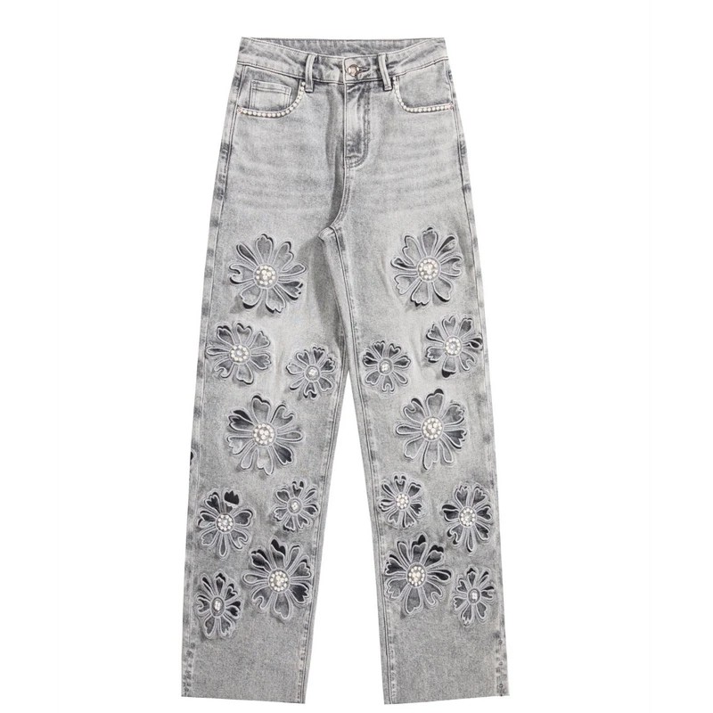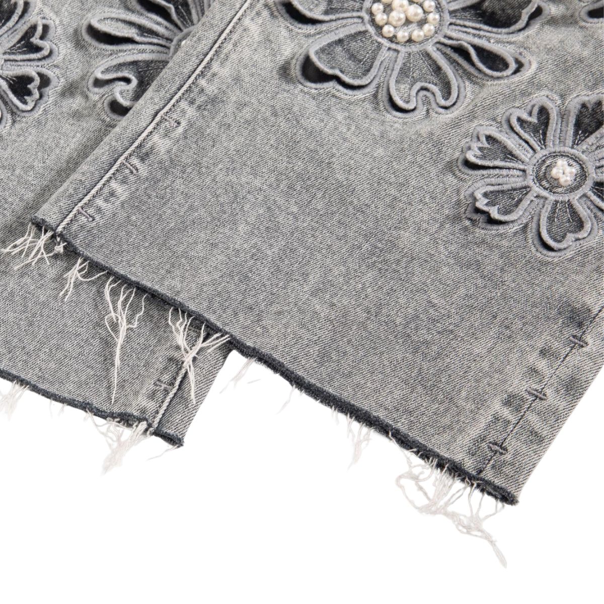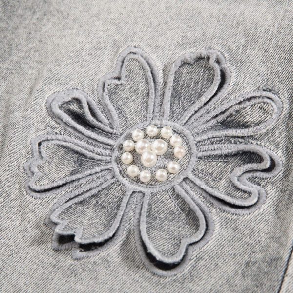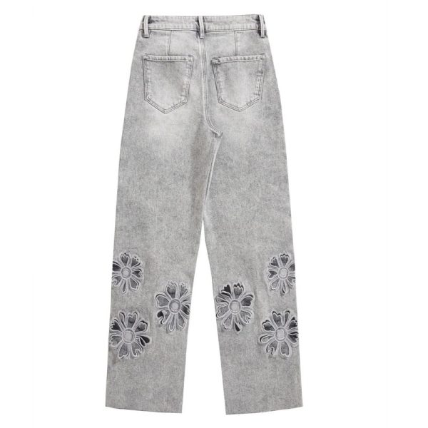 Vintage-wash jeans with hand-beaded embroidery and floral cut-out details