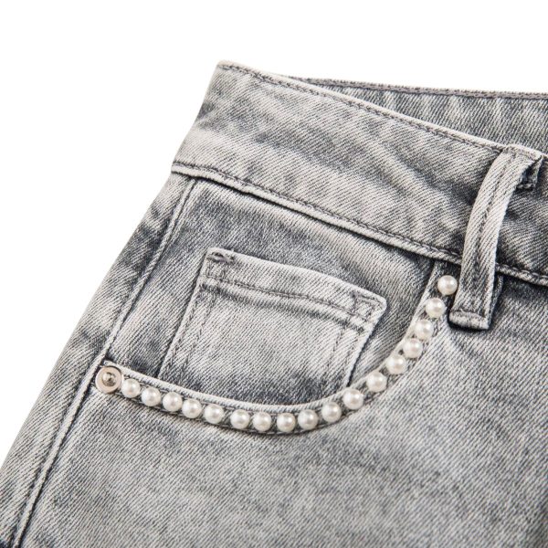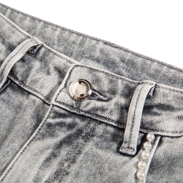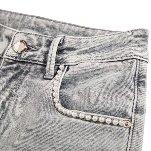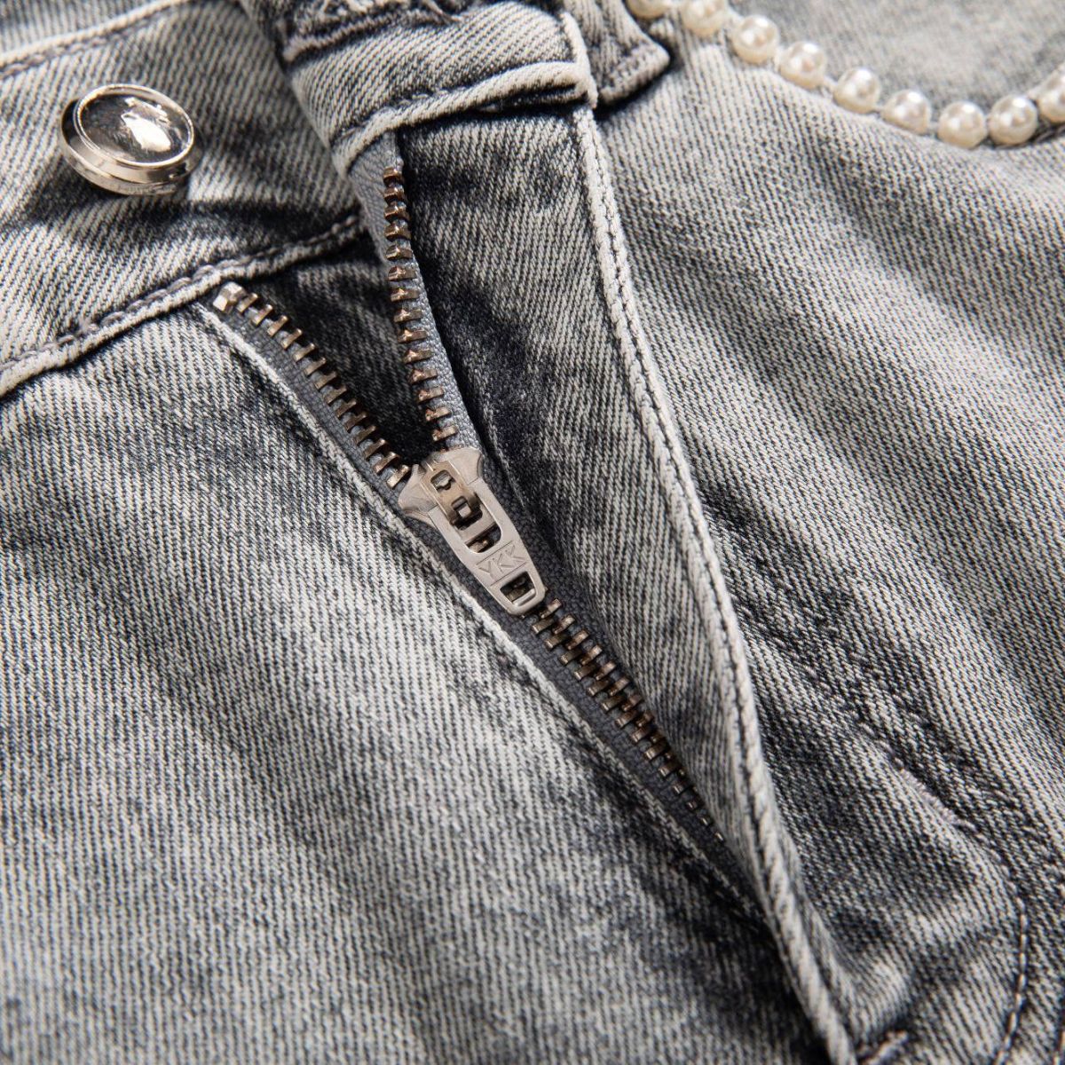 5-pocket styling, pearl-beaded front pocket trim