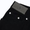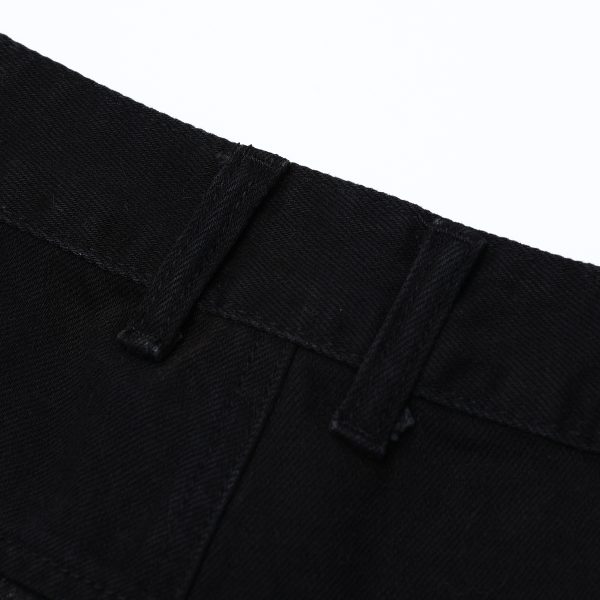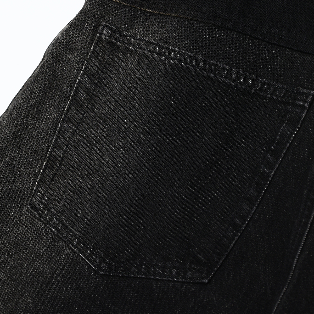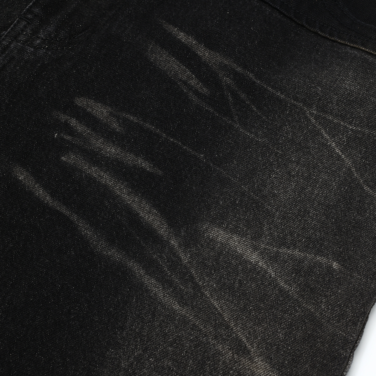 Raw edge design, light whiskering detail, side fade details