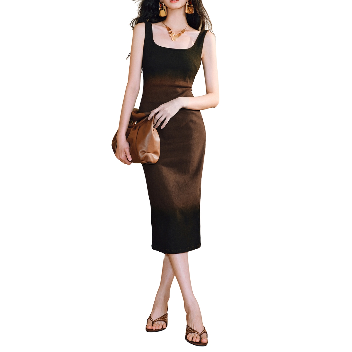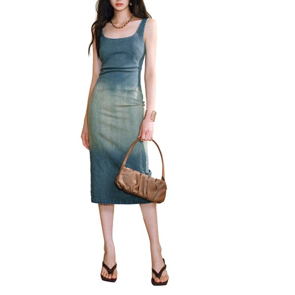 Slim-fit denim cami dress | mid-length figure-hugging silhouette