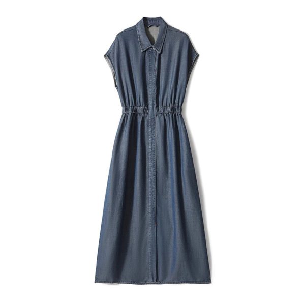 Women’s relaxed denim midi dress-cap sleeve & casual fit