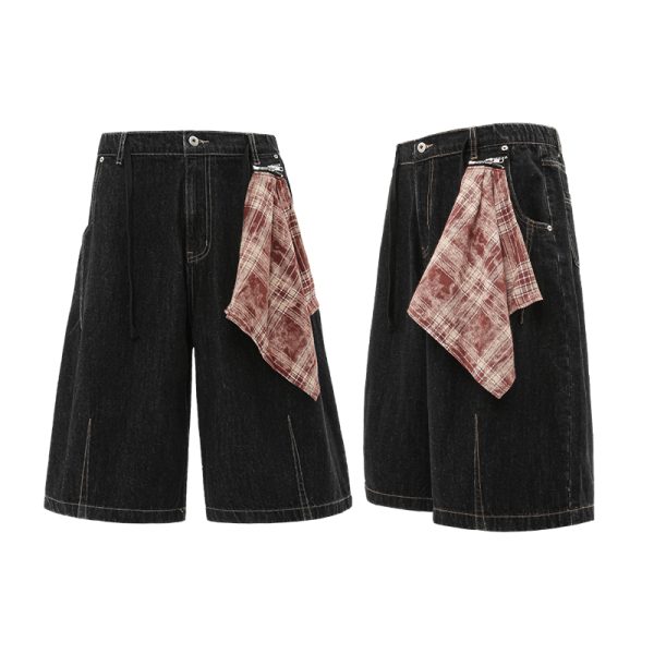 Western-inspired wide leg shorts with detachable checkered bandana