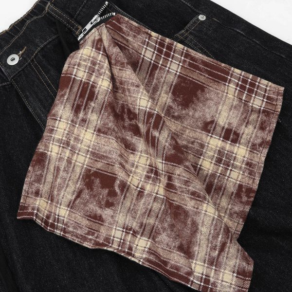 Zip-off checkered bandana at waist