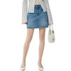 Women’s classic blue denim mini skirt -straight cut high-waist jean skirt