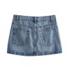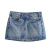 Crossover Asymmetric Waist Distressed Denim Mini Skirt