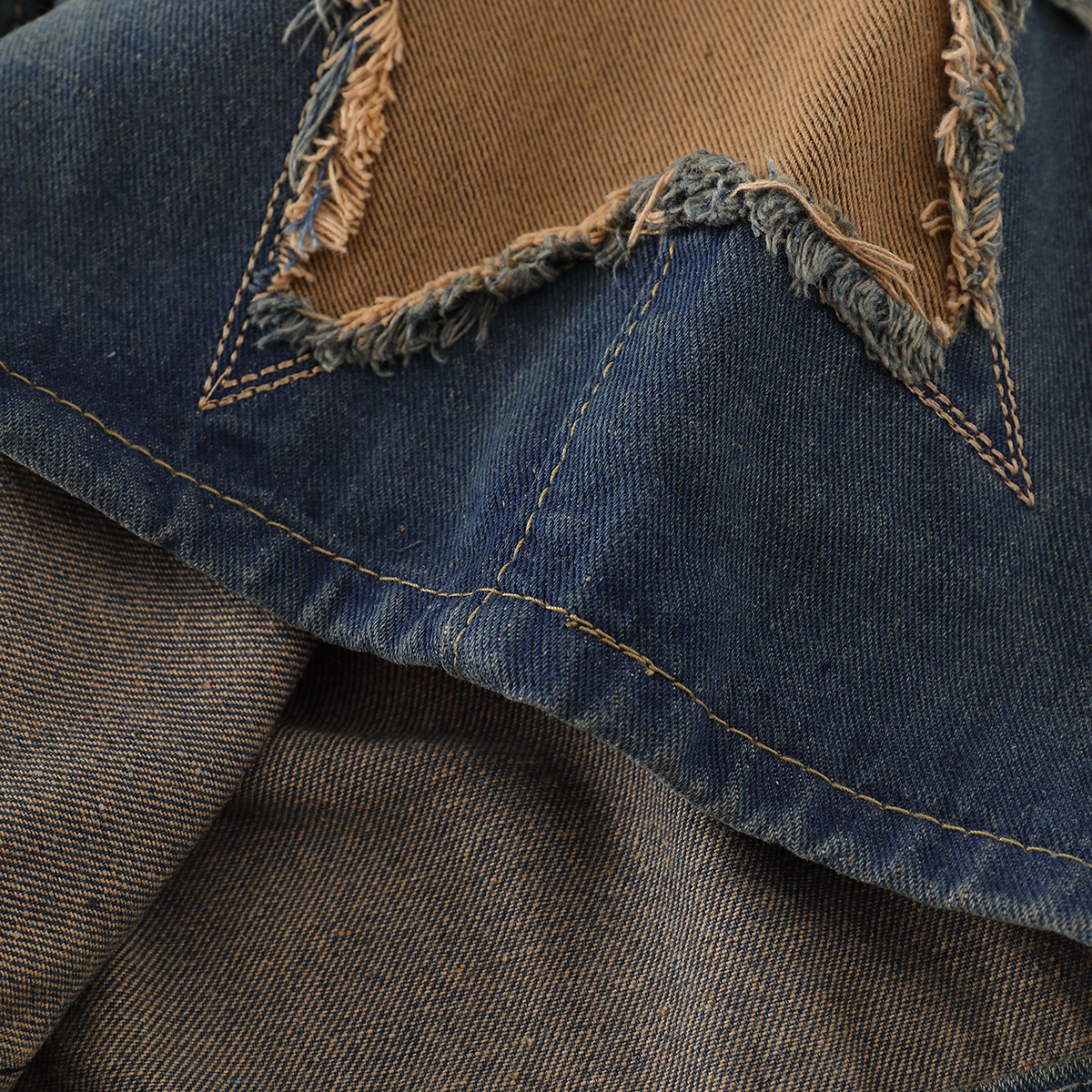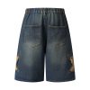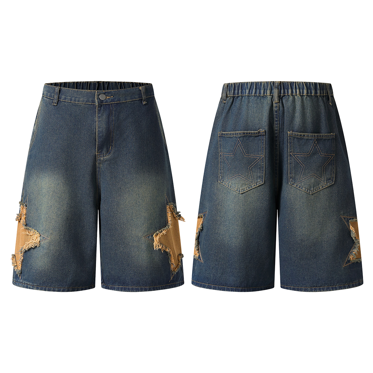 Streetwear shorts – contrast raw-edge star patches along side seams