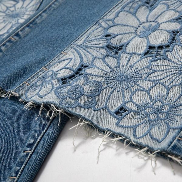 Features bold floral embroidery with artistic cut-out designs for an edgy yet feminine look