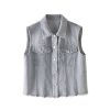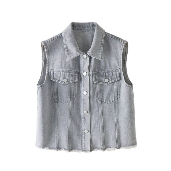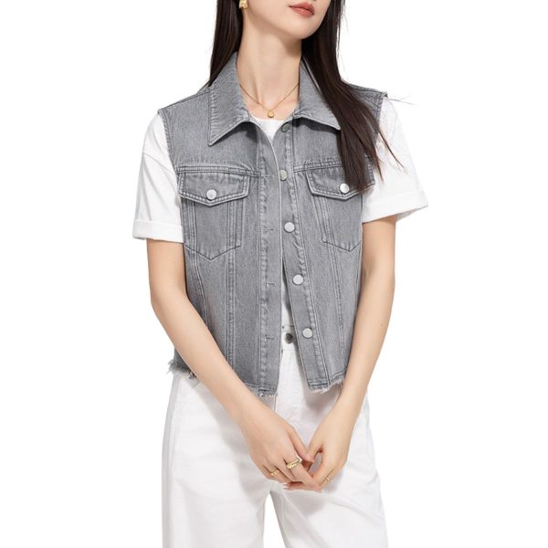 Gray denim vest for women – raw hem & relaxed fit