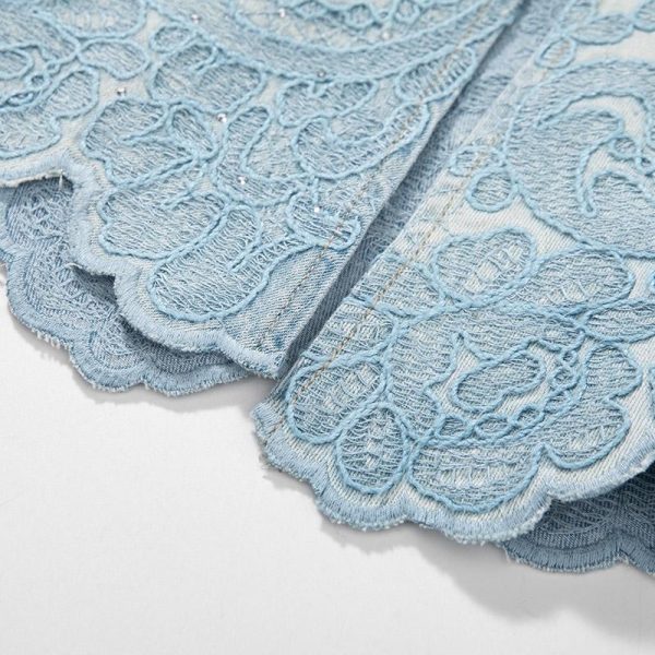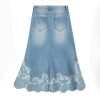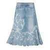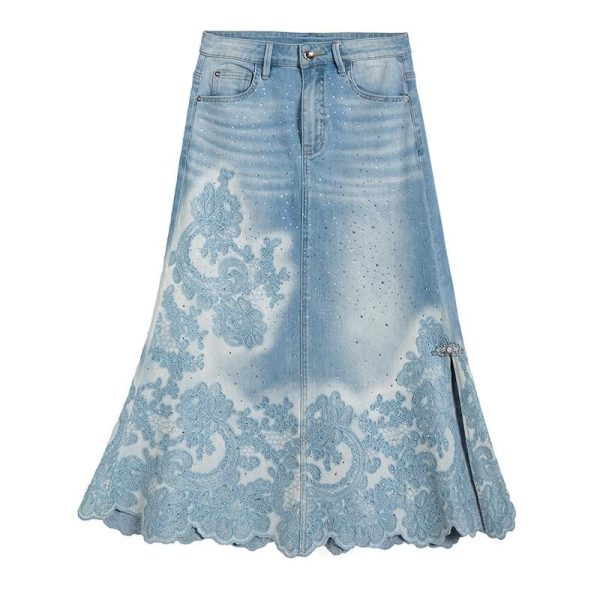 Couture embroidery denim skirt – flared A-cut & vent detail