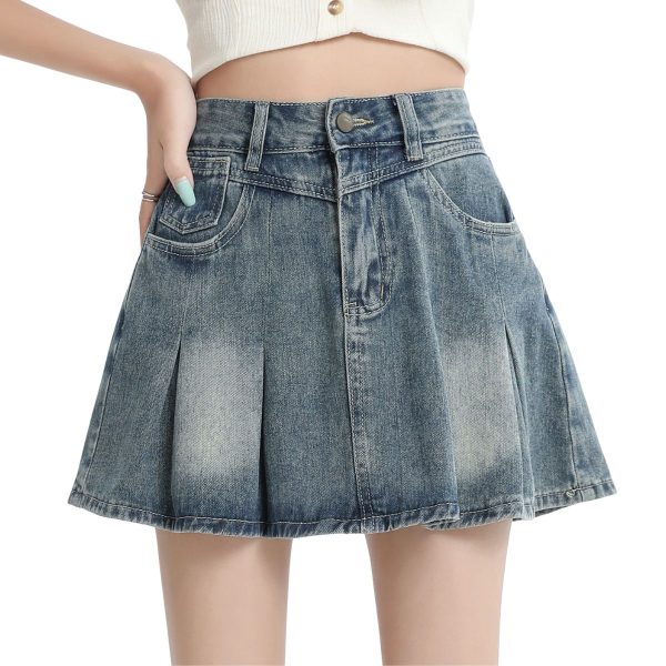 Stretch high-rise pleated skirt with vintage wash