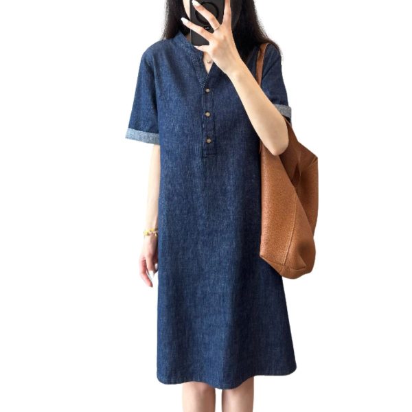 Column denim dress with rolled-up sleeves