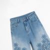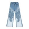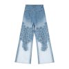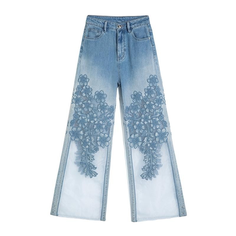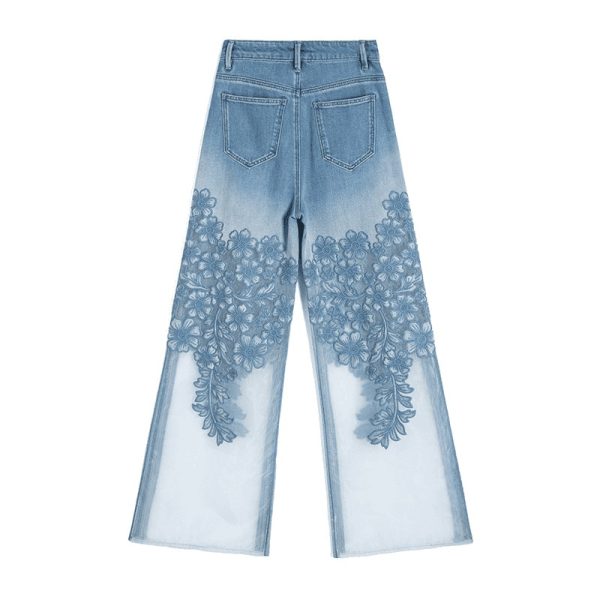 Lightweight bootcut jeans with floral-embroidered organza patchwork