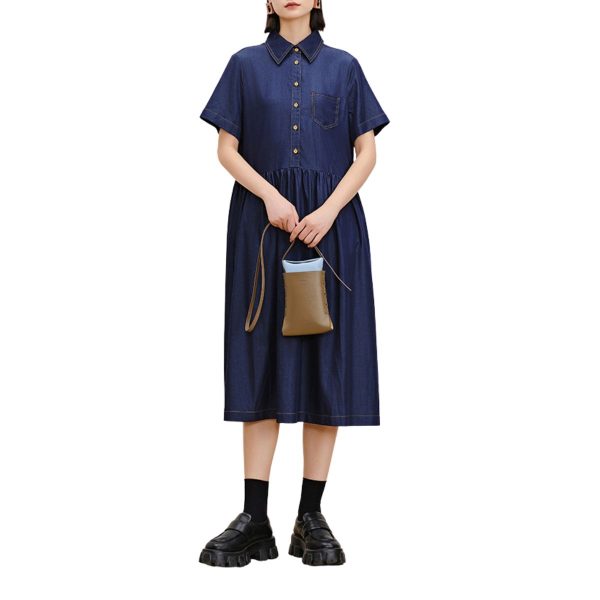 Oversized Pleated Denim Midi Shirtdress
