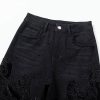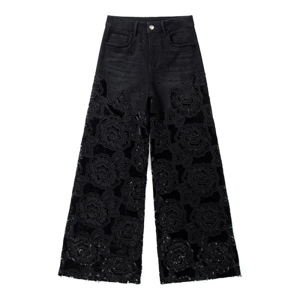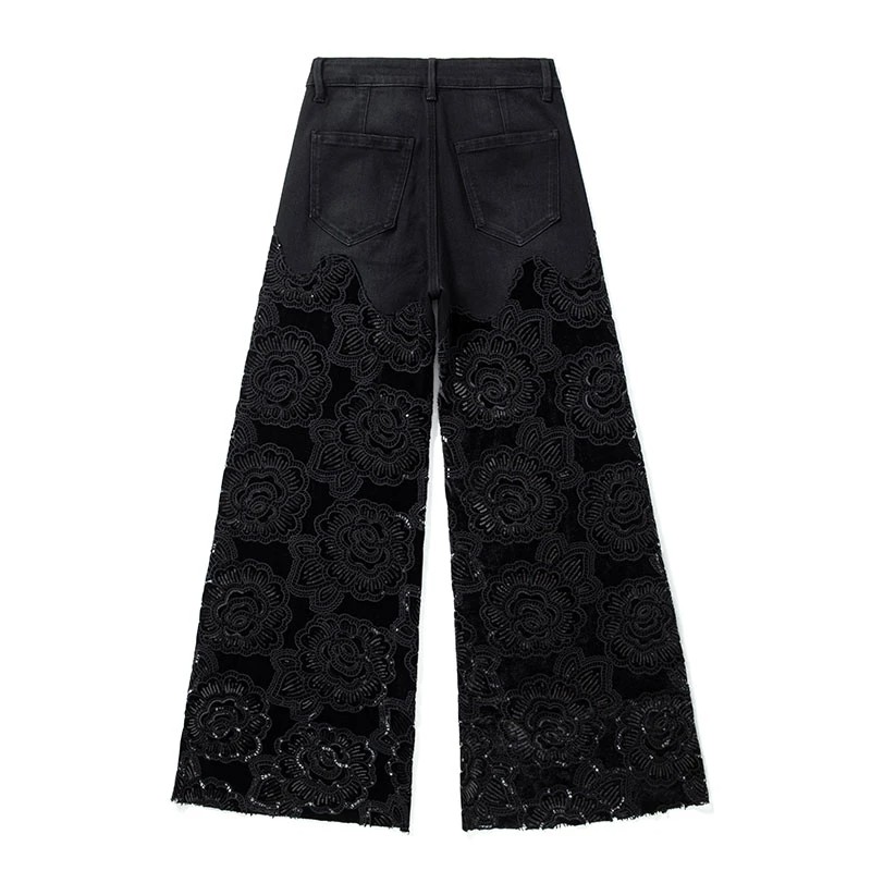 Bootcut jeans with patchwork, floral embroidery & sequins