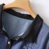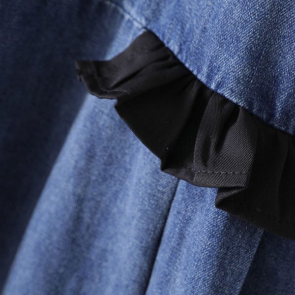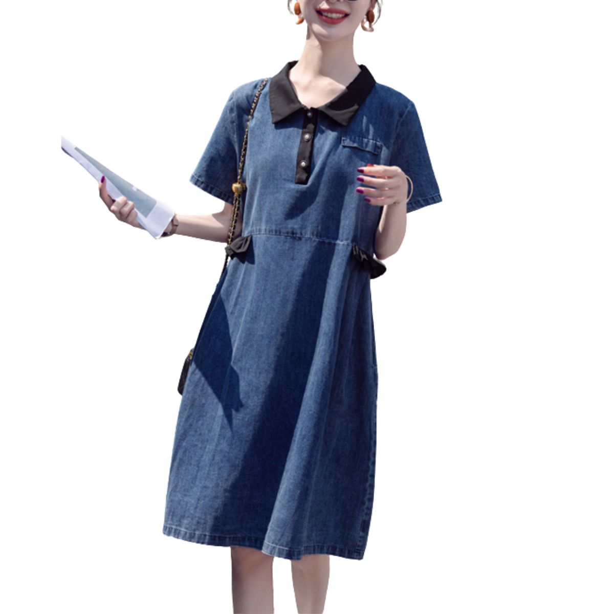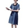Cropped-sleeve denim dress, classic knee-length silhouette