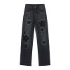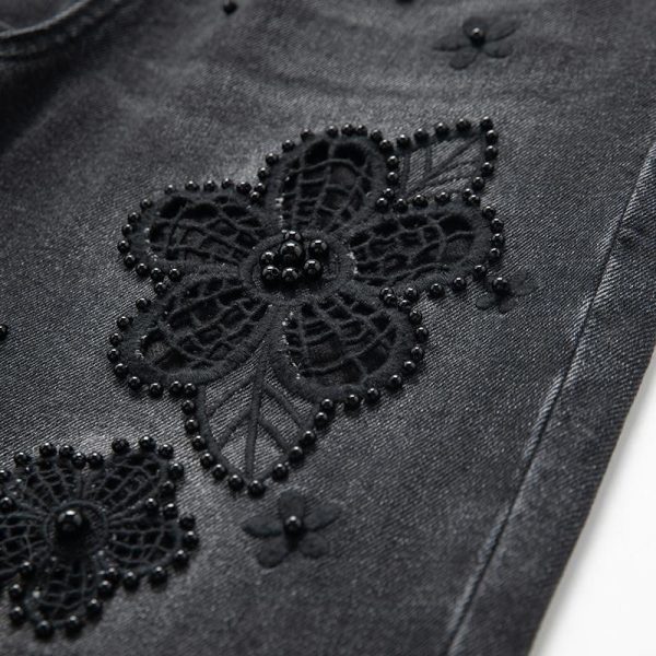 Pearl-Embellished Floral Embroidered Cut-Out Jeans
