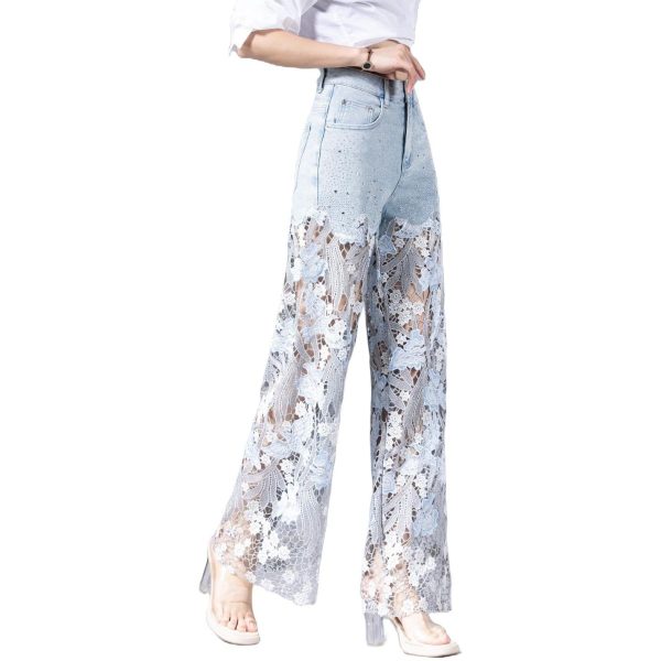 Sequin & rhinestones-embellished wide-leg jeans with cut-out details