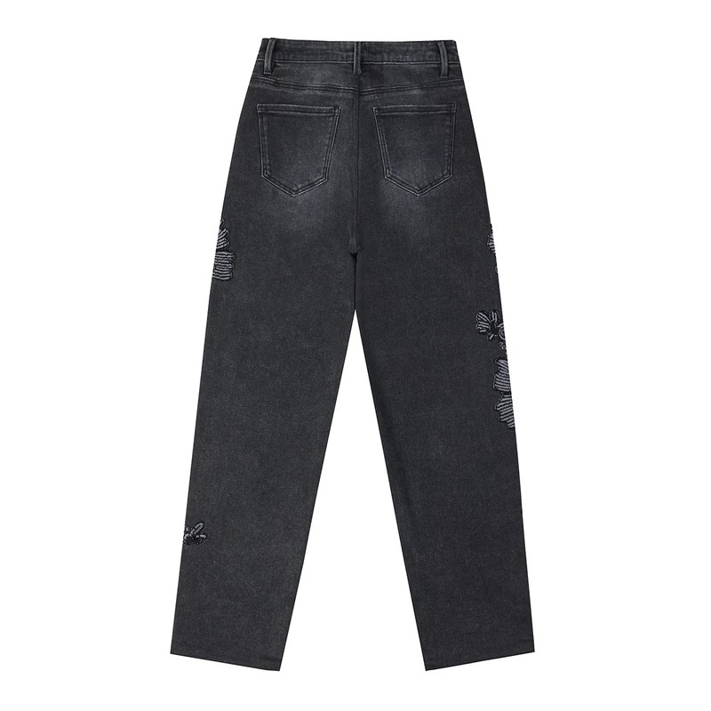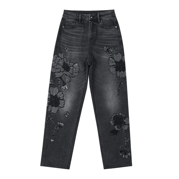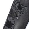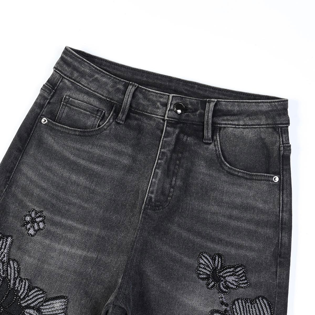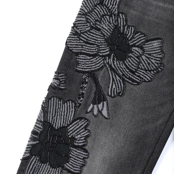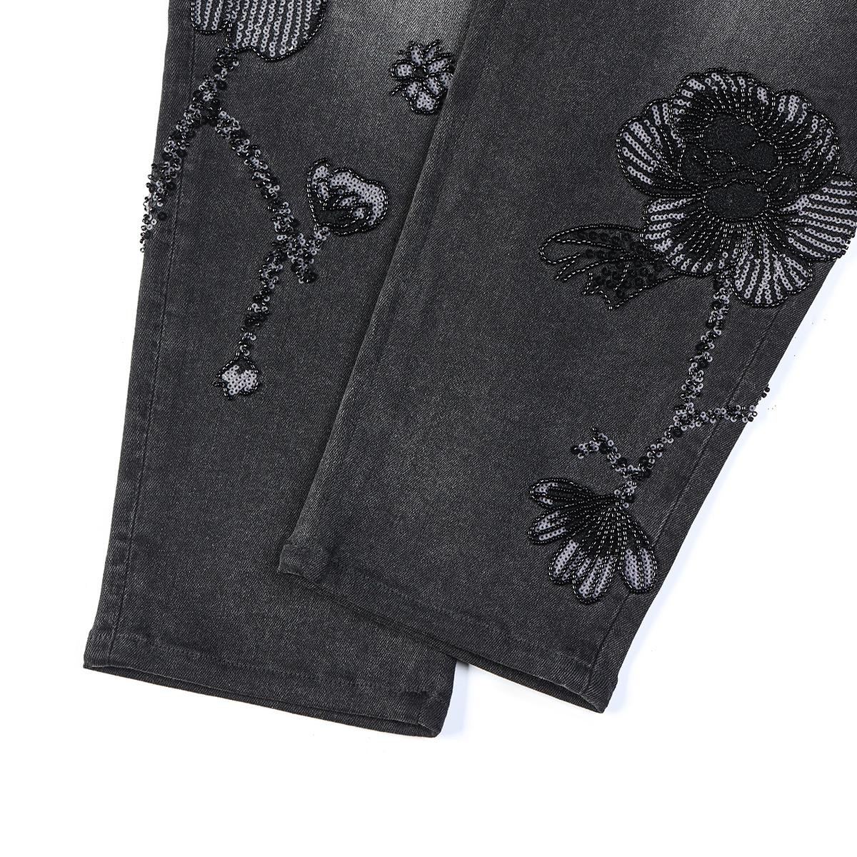 Sequined & Beaded Floral Embroidery Tapered Ankle Jeans