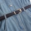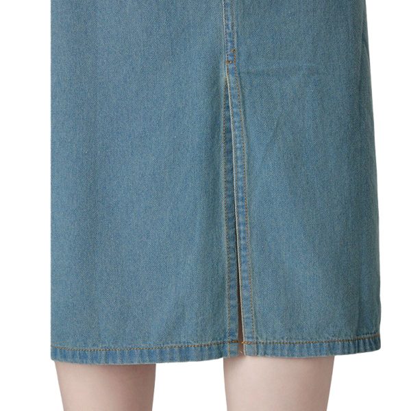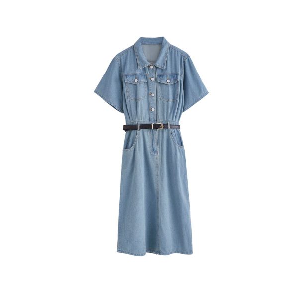 Short-sleeve denim shirtdress with self-tie belt | below-knee length