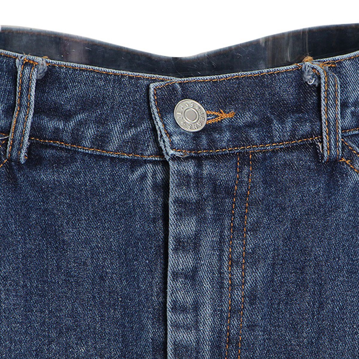 Button/zip fly; belt loops