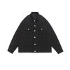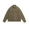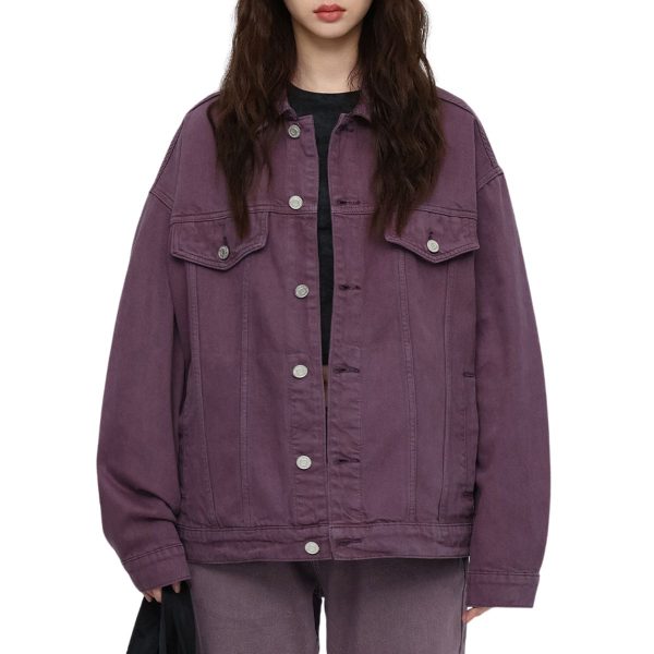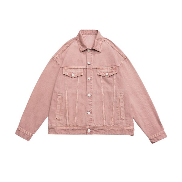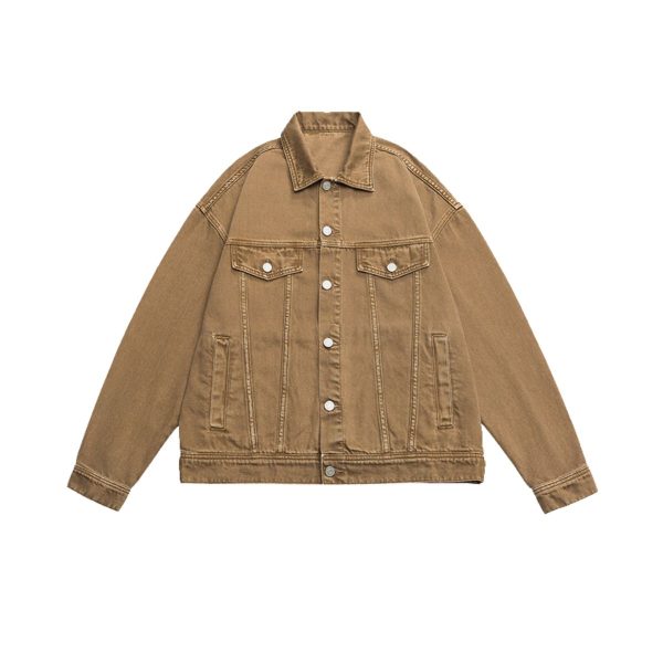 Vintage washed denim trucker jacket with adjustable waist