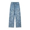 Wide-Leg Rose-Embroidered Cut-Outs Jeans