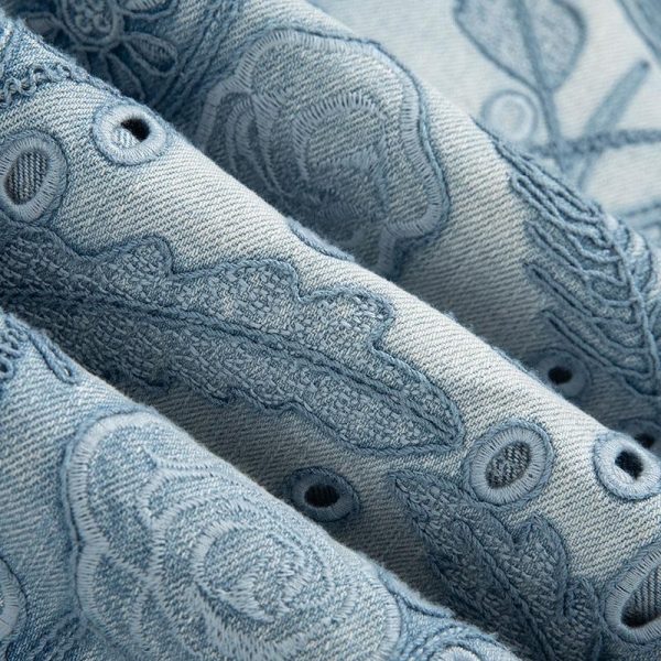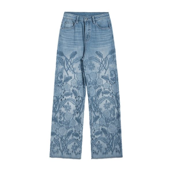 Lightweight wide-leg jeans with rose-embroidered cut-outs