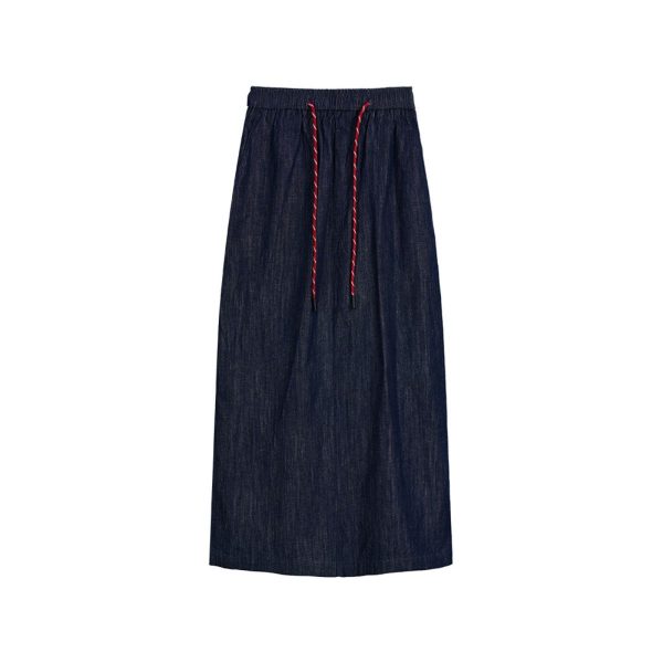 Women’s indigo denim midi skirt | adjustable drawstring waist