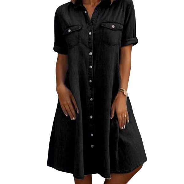 Classic denim shirt dress for women – lightweight with roll-up sleeves