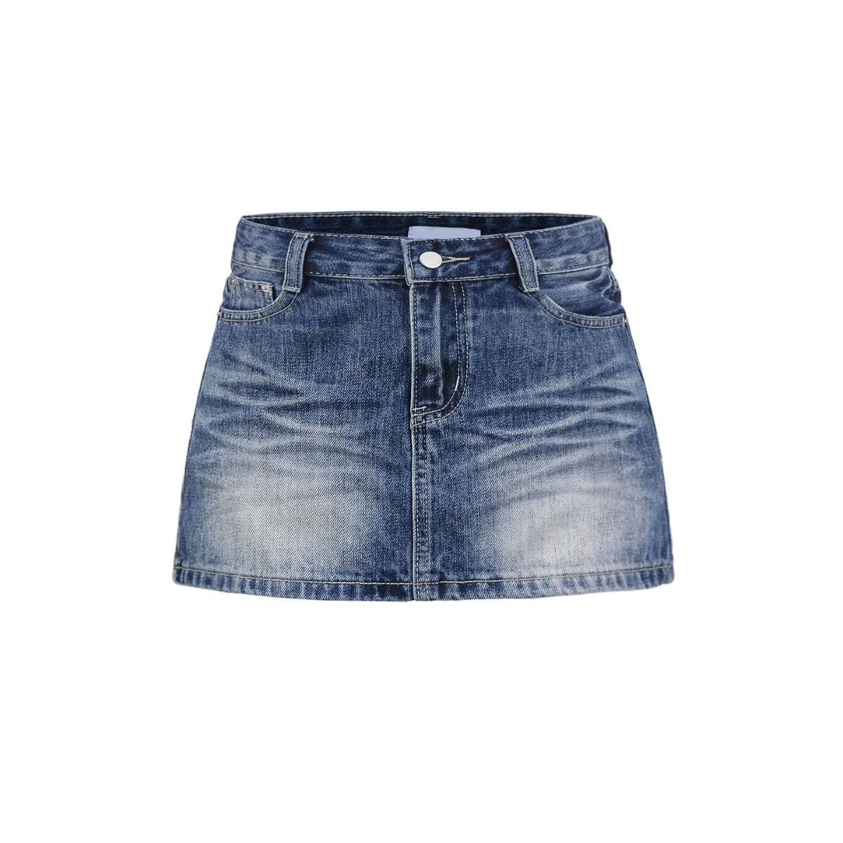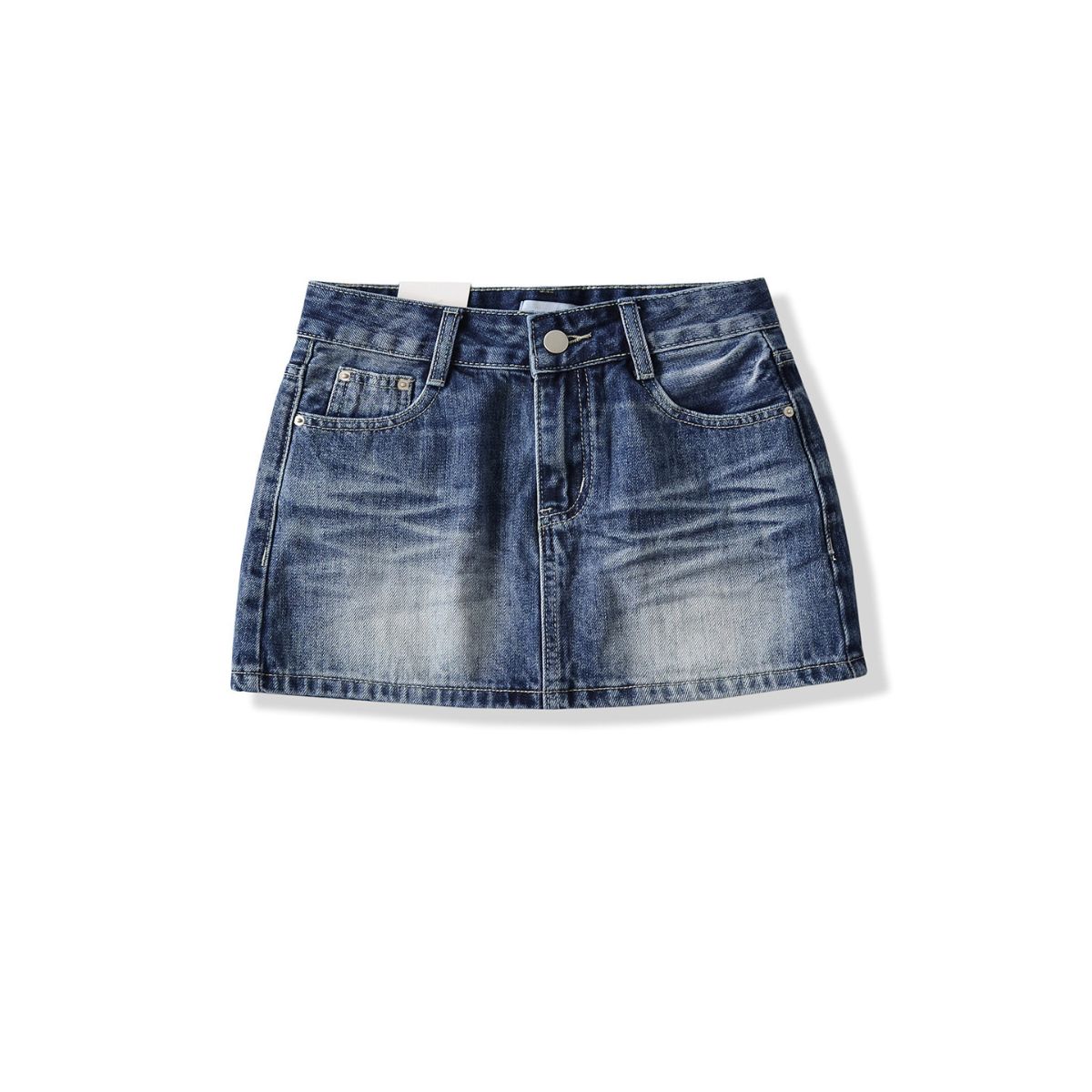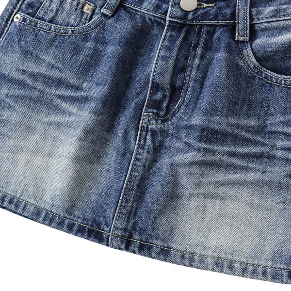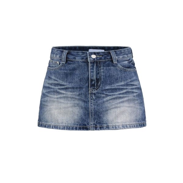 Women’s whishker denim skirt with vintage wash
